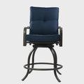 Outdoor Patio Swivel Bar Chairs – The Kozyard Isabella counter height swivel bar chairs are designed for outdoor patios, combining all-weather durability with comfortable cushioned seating for everyday outdoor use.