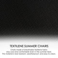 🏡Textilene Fabric: Our chaise lounge is constructed from textilene fabric that is breathable, skin-friendly, heat-dissipating, and retains its color well, ensuring a refreshing sitting experience.