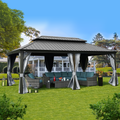 Kozyard Alexander 12' X 20' Hardtop Gazebo Aluminum Metal Gazebo with Galvanized Steel Double Roof Canopy, Curtain and Netting, Gray