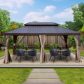 Kozyard Alexander 12' X 18' Hardtop Gazebo, Aluminum Metal Gazebo with Galvanized Steel Double Roof Canopy, Curtain and Netting, Brown