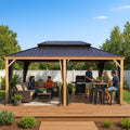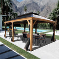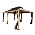 Kozyard Apollo 12’x18’ Hardtop Gazebo, Wooden Coated Aluminum Frame Canopy with Galvanized Steel Double Roof Permanent Metal Pavilion with Netting