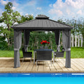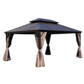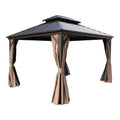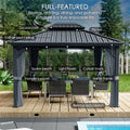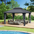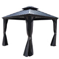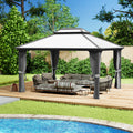 Kozyard Caesar Hardtop Gazebo - Permanent Metal Pavilion with Netting and Shaded Curtains for Patio, Backyard, Deck