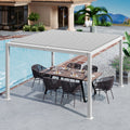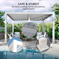 The pergola is designed for durability, incorporating an engineered structure with 4"x4" full aluminum poles that provide exceptional stability.