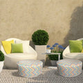 Rest your tired feet on this Kozyard Inflatable Stool Ottoman! Sporting a unique, bohemian print, it brings style, comfort, and fun to any outdoor space. Ideal for patios, pools, decks, vacation homes, or even camping, our multi-functional ottoman can be used as a seat or footrest. Its made of water-repellent, fade-resistant polyester and measures 9-inches tall with a 21 inch round, cylinder design. The inflatable stool ottoman is easy to clean, sturdy and holds air for a long time. Kick back and relax during outdoor parties or BBQ, or just while surfing the net and loading up on your vitamin D. The portability of this inflatable pouffe also makes it ideal for college dorms and travel.