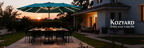 Create a cooler, more comfortable outdoor retreat with Kozyard patio umbrellas—designed to deliver reliable shade and lasting performance. Built with sturdy metal frames and fade-resistant fabric, our umbrellas provide dependable sun protection while enhancing the look of patios, decks, poolside seating, and backyard dining areas.