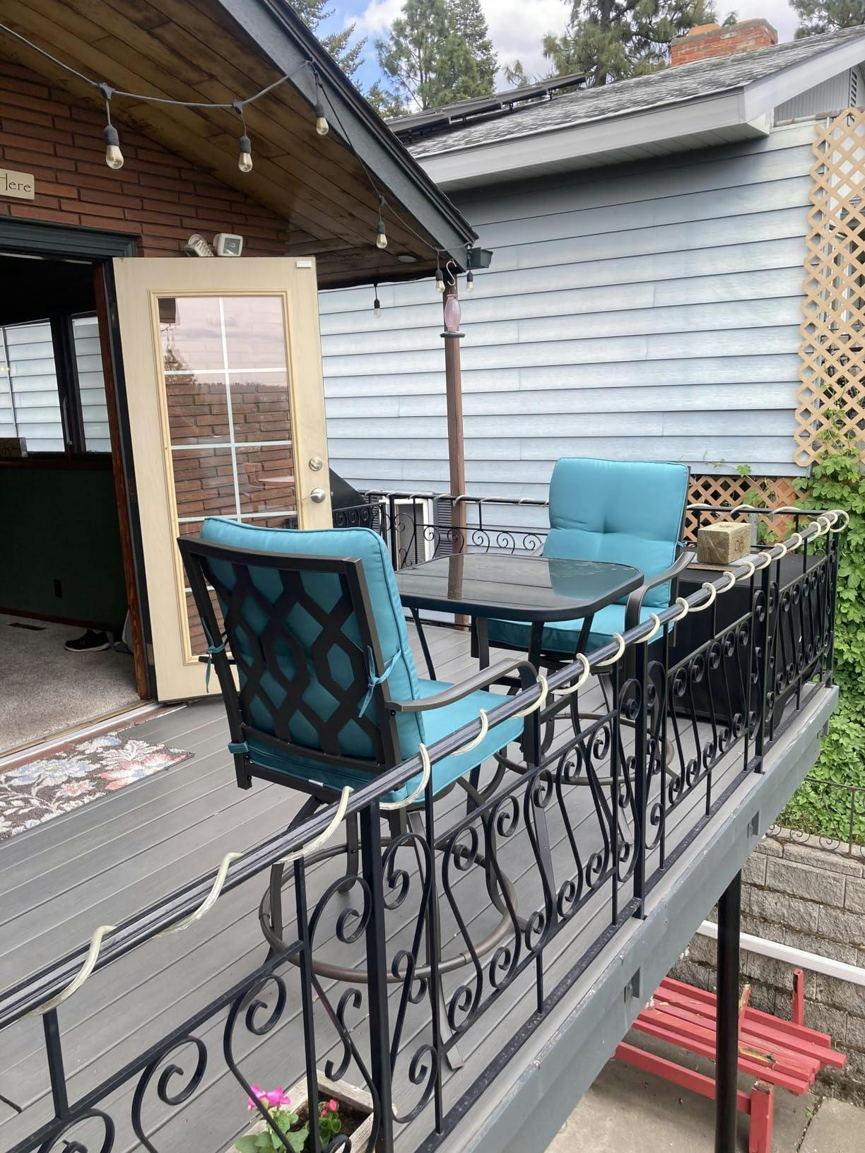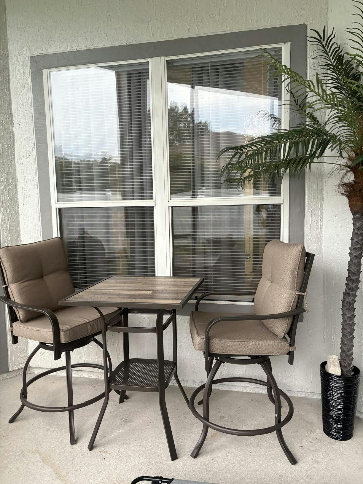 Outdoor Bistro Set for 2 – Sold as a set of two, these outdoor swivel bar stools are ideal for creating a cozy bistro-style seating area for coffee, wine, or casual outdoor dining.